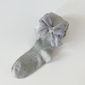 Grey Satin Bow Baby Stockings