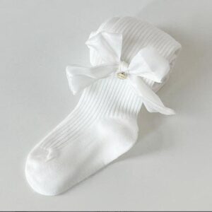 Cute, comfy, and stylish Nia’s Everyday Bow Tights feature delicate bows and a ribbed knee-high design, perfect for school or outings.